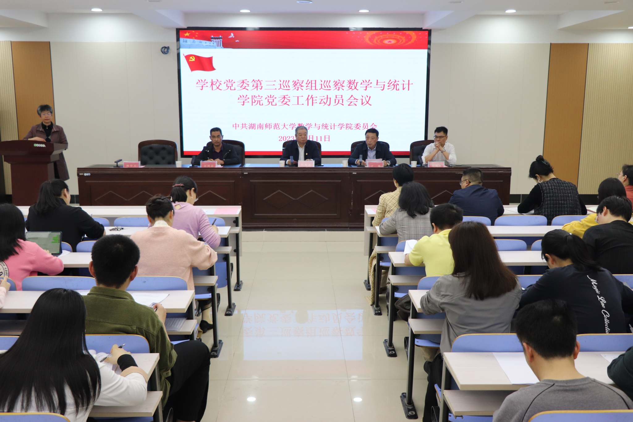 随后,颜中玉代表学院党委作表态发言。她表示,院党委将切实提高政治站位,坚决贯彻学校党委巡察工作部署。学院党委要求全院师生员工主动积极配合衔接,全力保障巡察工作顺利开展,全院领导干部一定要强化巡察成果的运用,对巡察发现的问题和存在的不足,逐项认真研究,深刻剖析原因,确保巡察组指出的问题事事有回音、件件有落实。同时,也要以此次巡察为契机,坚持统筹兼顾、协调推进,确保配合巡察工作与抓好常规工作“两不误、两促进”。全院上下要持续深入学习党的二十大精神,扎实推进内涵式发展,不忘初心,牢记使命,坚持立德树人,勇于改革创新,努力把学院办出特色、办得更好,在新的征程上创造新业绩、谱写新篇章。