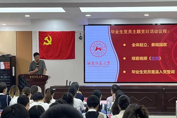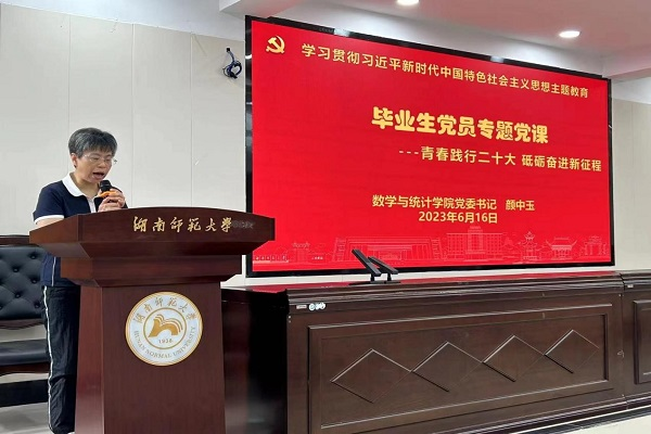 院党委颜中玉书记为毕业生党员讲授党课。她对全体毕业生党员在学习、科研、实践等方面的突出表现给予肯定,并对毕业生党员入党至今在思想觉悟、党章学习、专业能力等方向上取得的进步进行表扬。此外,颜中玉寄语全体毕业生党员,希望他们秉承校院精神,彰显新时代青年特色;树立伟大理想,奋发有为,助力中华民族伟大复兴事业。