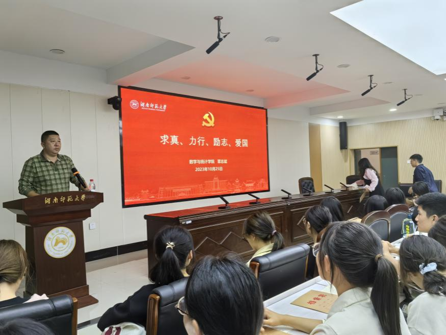 2023年10月25日晚,学院党委专职组织员覃志斌在学院309报告厅为学生党员、入党积极分子、入党申请人讲授了《求真、力行、励志、爱国》为题的专题党课,在专题党课上,覃志斌从中国共产党的成立讲起,一百年来,中国共产党领导中国人民走过了波澜壮阔而又艰难曲折的奋斗历程,取得了举世瞩目的辉煌业绩,使中国发生了沧桑巨变,对世界产生了重大影响。