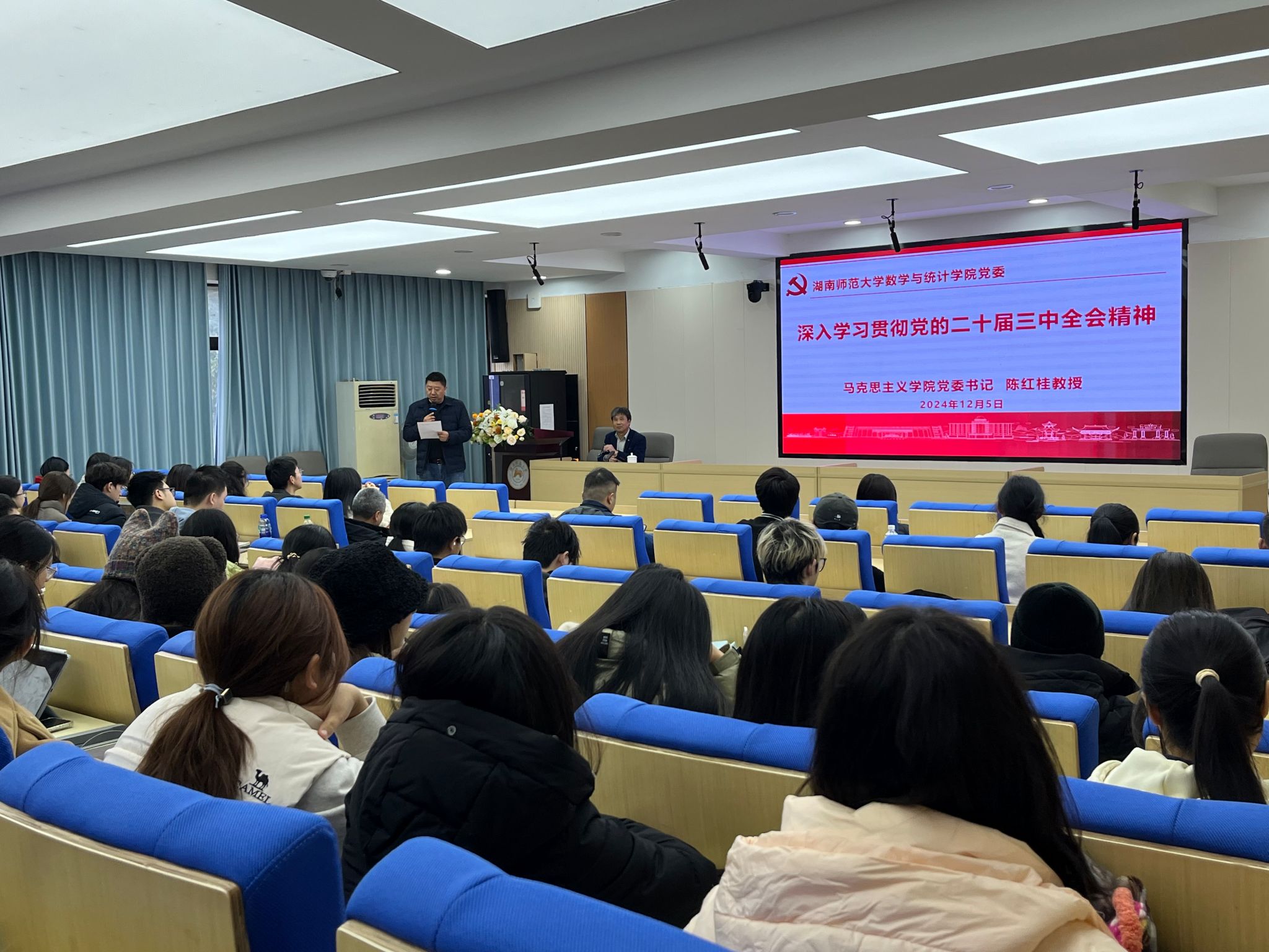 12月5日下午,为深入学习贯彻党的二十届三中全会精神,英国上市官网365309报告厅举行专题宣讲报告会。校宣讲团成员、马克思主义学院党委书记陈红桂教授受邀作宣讲报告。全体院领导、科室主任以及师生代表200余人参加,宣讲会由专职组织员覃志斌老师主持。