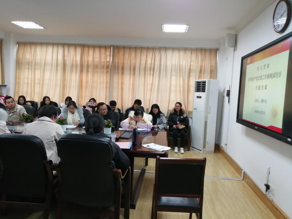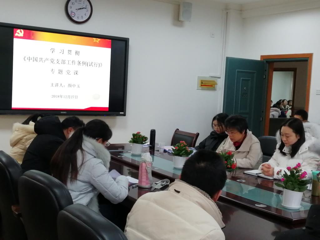 会上,党委书记颜中玉做了《中国共产党支部工作条例(试行)》专题党课辅导,从《条例》指定的背景和过程,出台的重要意义,《条例》主要内容,特别是党支部的功能定位,党支部的设置、基本任务、工作机制、组织生活、党支部委员会建设、党支部工作的领导指导职责,结合学院工作实际,进行了深入浅出的讲解。