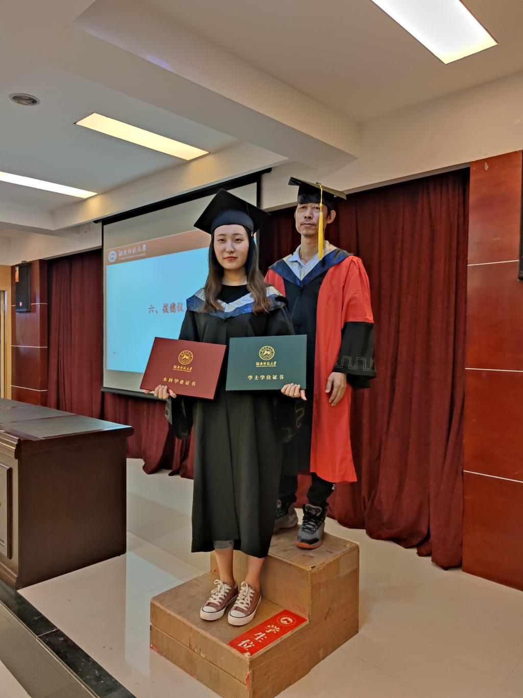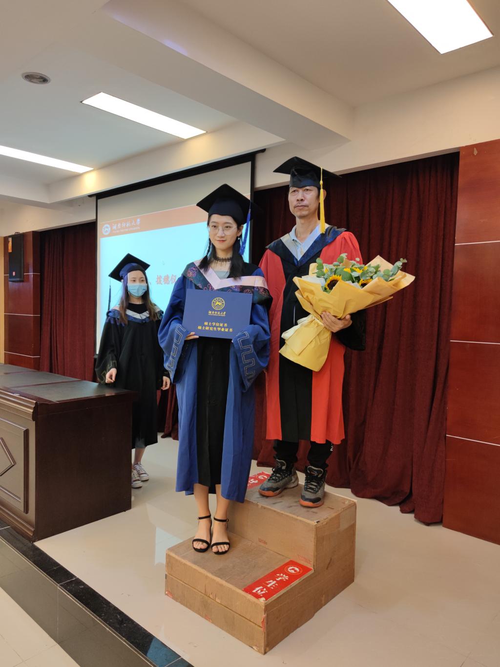 典礼的最后,戴求亿老师为现场的毕业生颁发毕业证、学位证,拨转流苏,典礼在师大版《不说再见》的歌声中圆满结束。