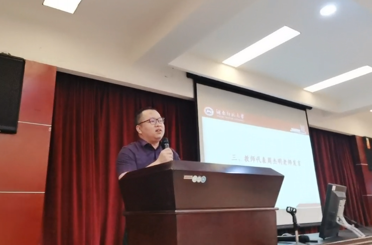 教师代表周杰明老师发表了对特殊时刻毕业典礼的感慨,他表示,作为数统院的一名老师,同时也是2013届毕业生,想和大家说一些心里话,走出校园,大家将面临太多不确定性,需要我们做出选择,岁月有极限,当旋转人生坐标,追求最值,解好生活方程,大胆地利用不确定性,根据自己的判断,做出最优决策。也希望同学们在自己能力承受范围内适当跳出自己的舒适区,以激发潜能,注重对自己未来投资,不要轻易选择捷径,奋斗的过程必不可少。