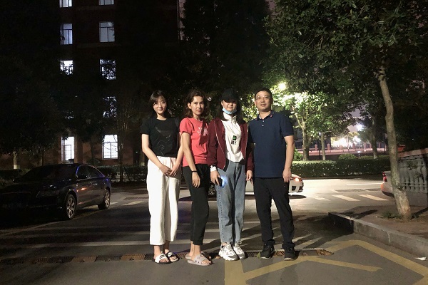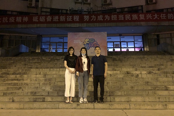 数统院党委副书记熊卓然、2020级辅导员肖惠卿与少数民族籍老师姑丽于住宿地点探望新生
