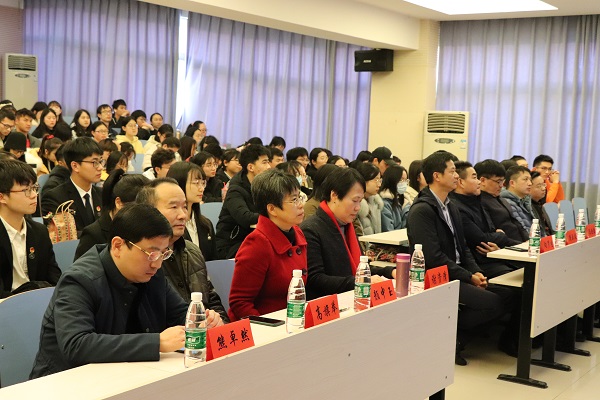 谢资清发表致辞。她介绍到,校友奋发奖学金由数统院1981级校友周玉波等人于2005年倡导发起,旨在勉励数统院学子秉承“仁爱精勤”的校训精神奋发图强。同时,谢资清对同学们提出三点期望:志存高远,脚踏实地,用所学报效祖国;踏实学习,勇于实践,养成独立创新能力;潜心修学,戒骄戒躁,走好向上向善的人生路。