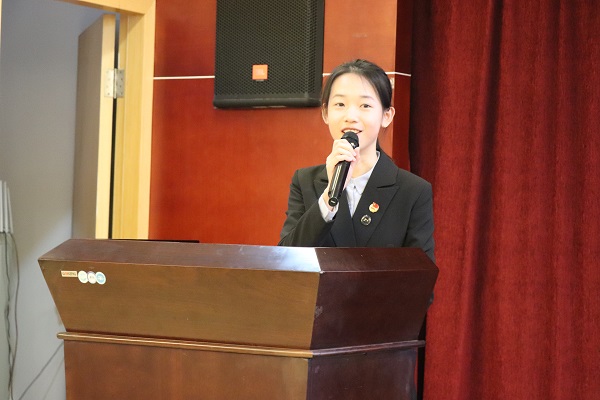 获奖学生代表2017级数学与应用数学专业李婧同学发言。她对校友们的关怀和学院的培养表达了衷心的感谢,并表示将带着学院和校友的期望继续奋发向上。