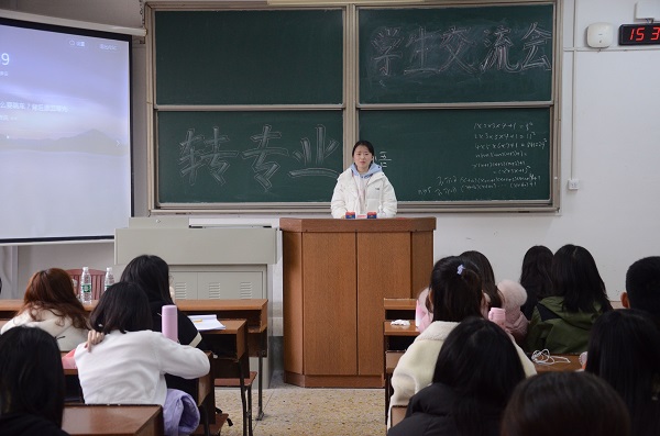 熊卓然对全体转专业学生提出要求,他提醒同学们高效率利用课余时间,赶上所属班级学习进度。熊密密记录下新同学的问题与诉求,为同学们答疑解惑,并对此次会议做总结发言。