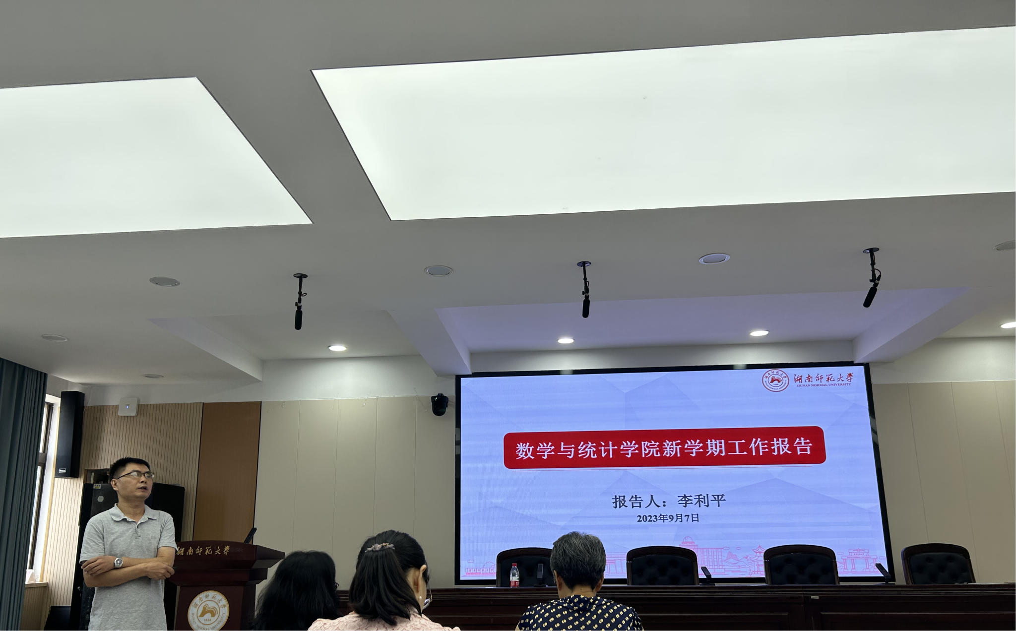 院长李利平教授做学院新学期工作报告。报告分为四个方面内容:欢迎新入职教师和欢送退休教师、回顾学院上学年以来所做的主要工作、学院当前突出问题、新学年的工作计划。他指出要加强思想道德、学风和学术道德建设;加强高层次人才引进力度,持续引进青年专任教师;提升对人才培养工作的重视;明确学科定位,优化学科布局,彰显学科特色;以灵活多样的方式开展工会活动,促进学院教师凝聚力;争取在2025年前实现学院教学科研办公环境较大改善,推动学院事业发展再上新台阶。