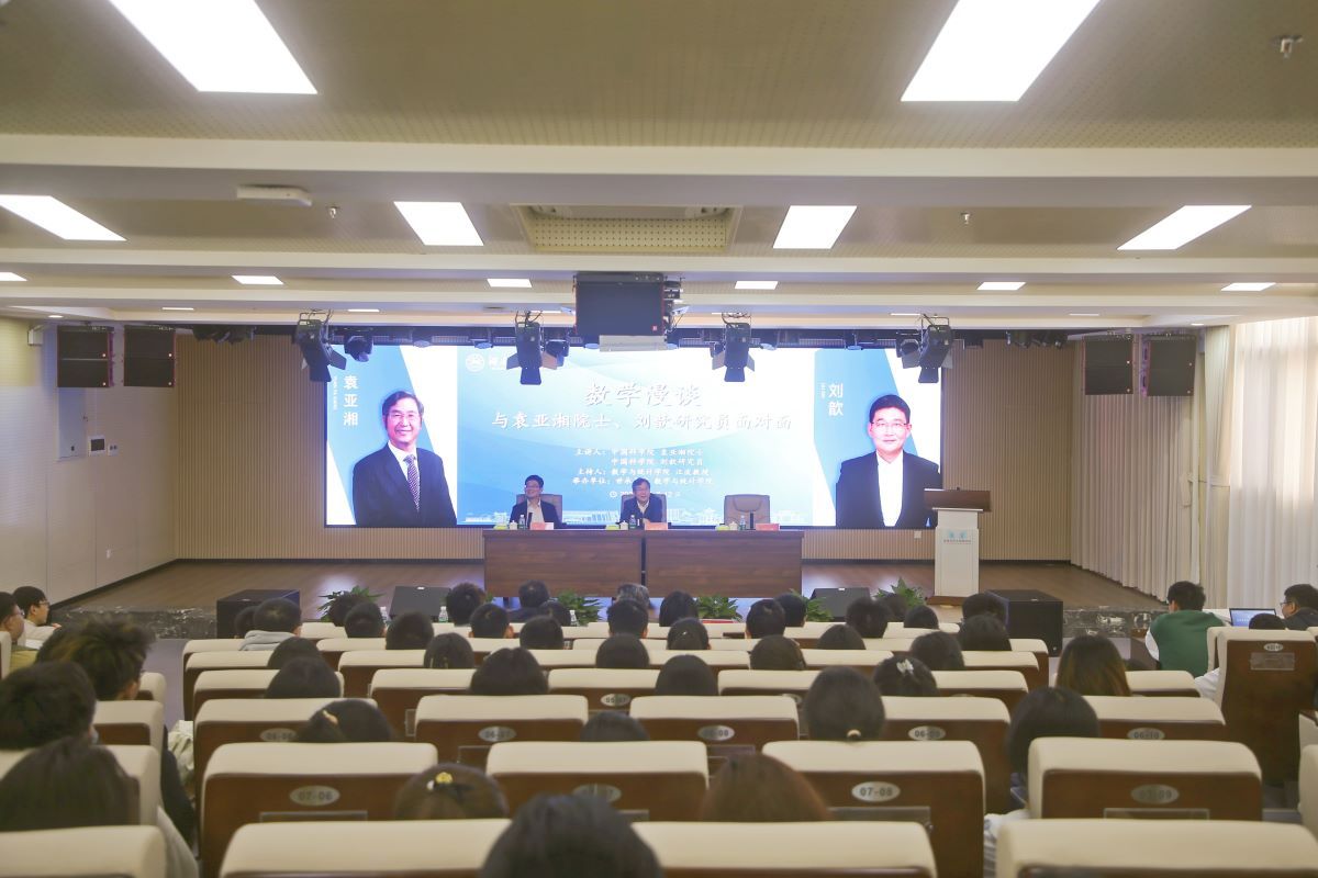 2024年4月12日,著名数学家、中国科学院数学与系统科学研究院院士袁亚湘、研究员刘歆到湖南师大英国上市官网365主讲“数学漫谈”,与师生一起交流探讨数学的奥秘。单位供图