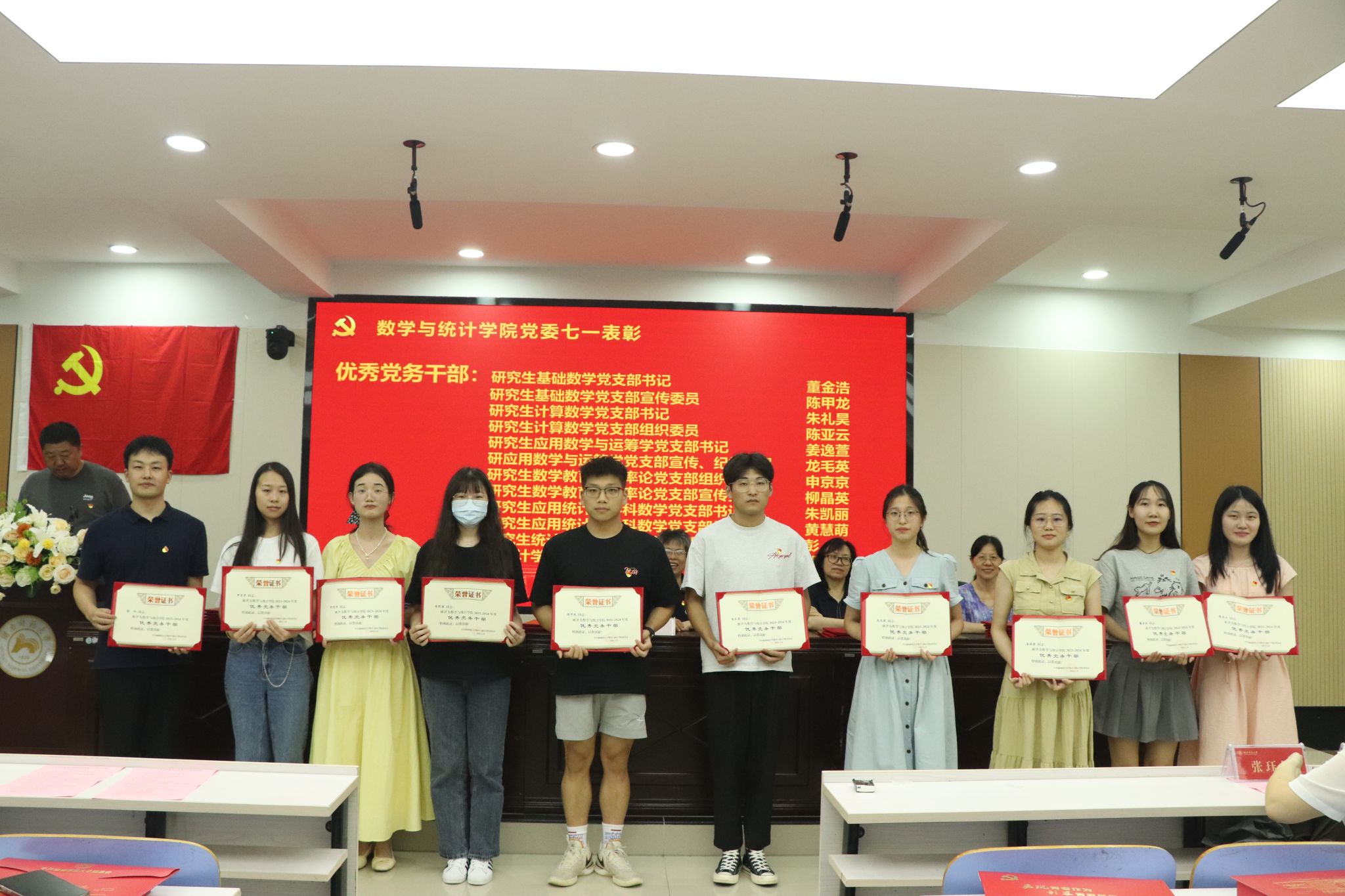 6月17日晚,英国上市官网365在格物楼309报告厅开2023-2024年度“七一”表彰大会。学院党委书记颜中玉,党委副书记涂榉耀,副院长陈君,党委委员、计算与随机数学教育部重点实验室专职副主任刘亚琴,院党委专职组织员覃志斌,党委委员、院组织人事秘书林虹,学工办主任李俐出席此次活动,学院全体党员参加活动。