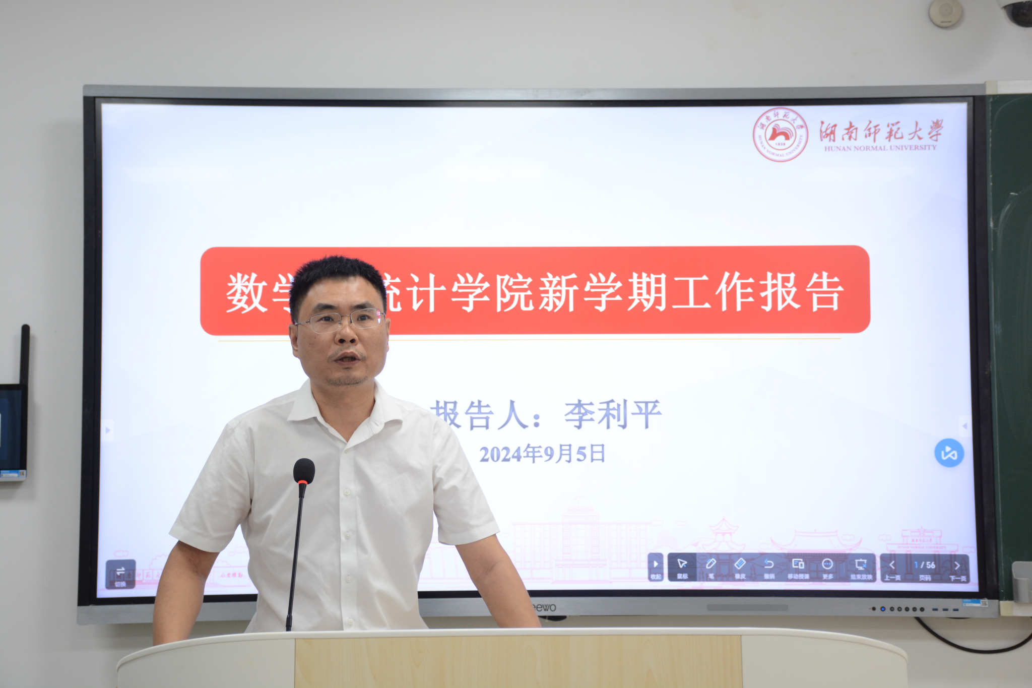 首先,院长李利平做学院新学期工作报告。报告分为四个方面内容:欢迎新入职教师和欢送退休教师、回顾学院上学年以来所做的主要工作、学院当前突出问题、新学年的工作计划。他指出要加大人才引进力度;加强对青年教师的支持;强化政策顶层设计,落实全员育人体系;充分发挥教学委员会和专业建设及人才培养专家咨询委员会作用;修改劳务分配条例,提升工会活动的频率和质量等,推动学院事业发展再上新台阶。