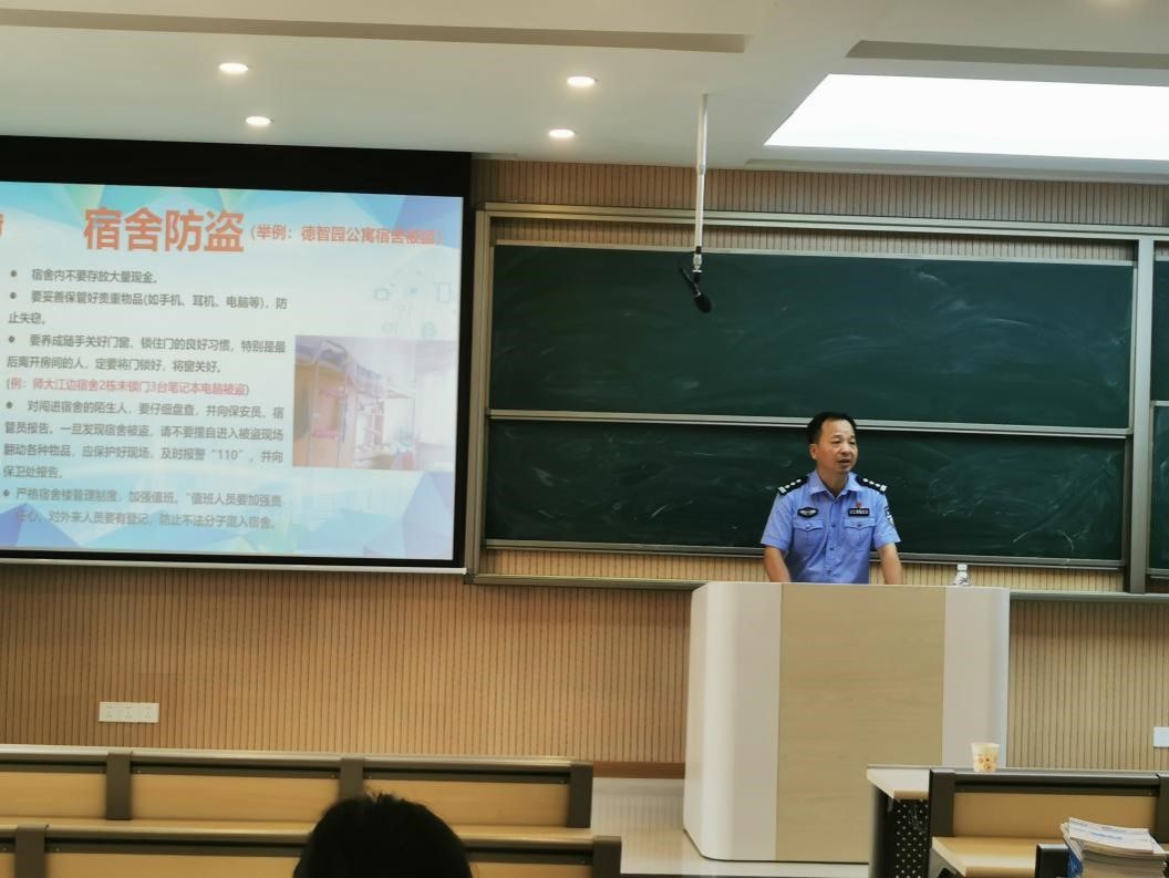 接着,陈芳桂警官从财产安全、人身安全、防网络电信诈骗等方面对同学们进行安全教育宣讲。陈警官通过列举大量的真实案例告诫同学们,安全问题随时随地发生,大家要注意观察,避免安全事故的发生。之后陈警官着重给同学们讲解了防范电信网络诈骗,他指出信息化高速发展时代,各类诈骗手段层出不穷,大家一定要对网络信息时刻保持高度警惕心理。