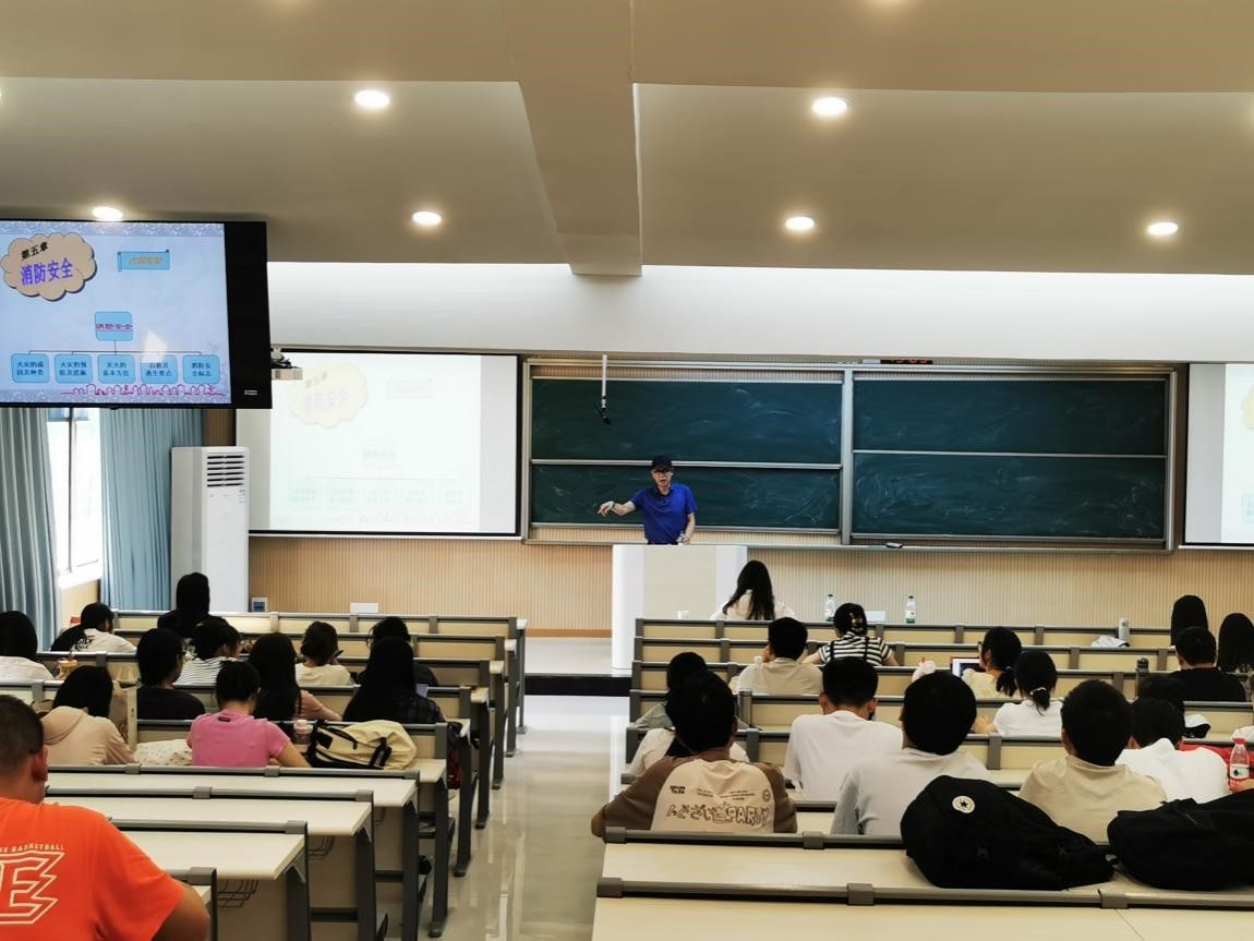 首先,粟仁良副处长跟同学们强调:无论在哪个年龄段安全意识都非常重要。接着粟处长从国家安全和消防安全两个方面对同学们进行了安全教育宣传。在国家安全方面,粟处长指出安全教育与每个同学都息息相关,并引用了习近平总书记对新时代青年人的寄语;在消防安全方面,粟处长通过声情并茂地演示告诉同学们面对火灾如何自救。最后,粟处长告诫同学们要时刻注意安全问题,珍惜自己的生命。