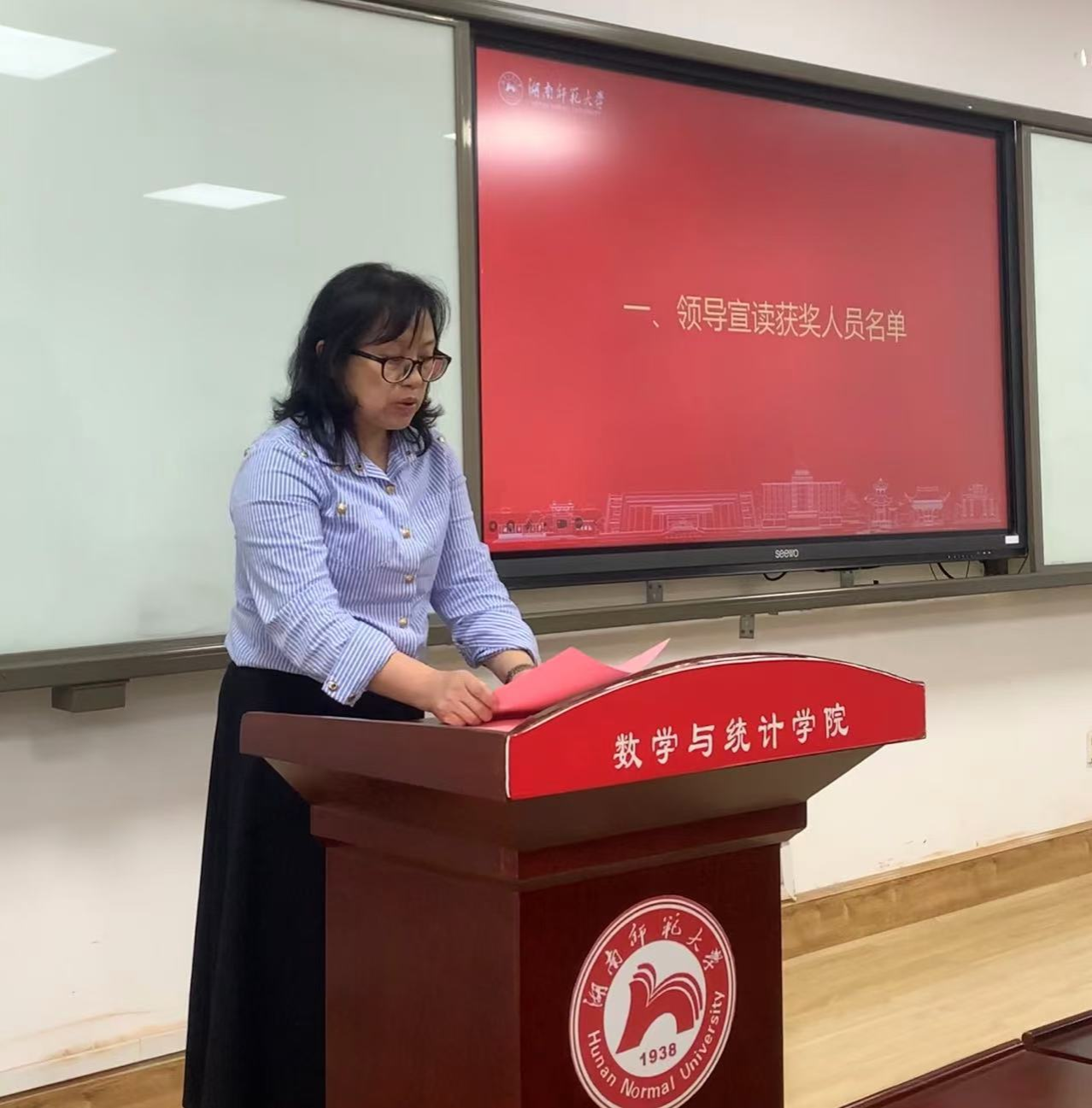 陈君副院长宣读本次实验室安全知识竞赛获奖人员名单,对获得表彰的个人表示诚挚的祝贺,并呼吁全体同学以他们为榜样,不断深化对实验室安全的认识,共同营造一个和谐安全的实验室氛围。随后,副院长陈君、计算与随机数学教育部重点实验室专职副主任刘亚琴为获奖个人颁发荣誉证书和奖品。