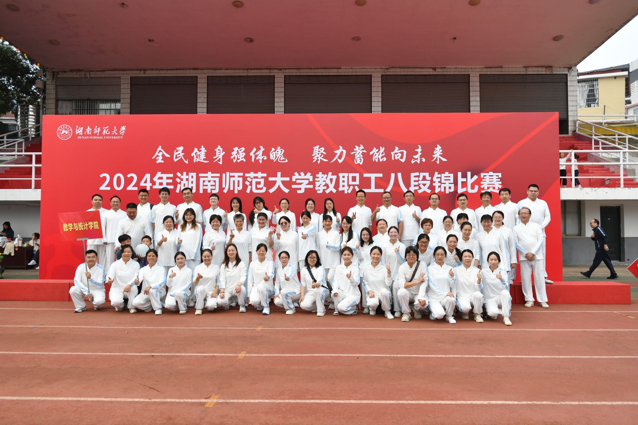 (通讯员 刘佳林 张明锐 刘芮莹)11月16日上午,英国365上市公司2024年教职工八段锦比赛于二里半校区田径场有序开展,来自各学院和机关的58个代表团参与活动。其中,英国上市官网365(以下简称“数统院”)代表团由数统院党委书记颜中玉、副院长陈君等多位教职工组成。