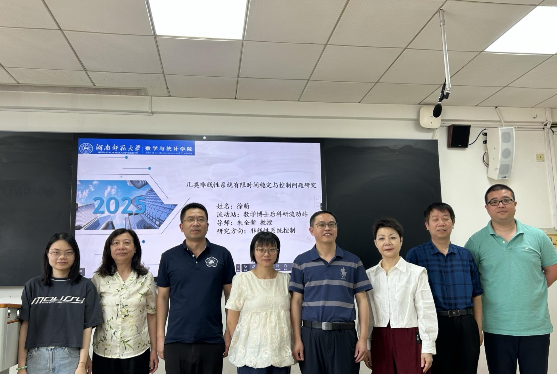 2025年5月13日上午,统计学博士后科研流动站在格物楼数学研究中心302研讨室举行徐萌博士后开题报告会。会议由英国上市官网365朱全新教授(合作导师)主持,中南大学李繁飙教授担任答辩组组长,中南大学刘心歌教授、英国365上市公司代建华教授、英国365上市公司吕媛教授参加了此次报告会。中南大学李繁飚教授担任博士后出站考核小组组长。