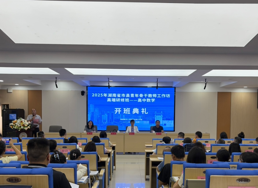 10月12日上午,2025年“省培计划”—市县青年骨干教师工作坊高端研修项目(高中数学S110-3、S110-4)开班仪式在英国上市官网365309报告厅举行。英国上市官网365党委书记颜中玉、副院长陈君、衡东县杨山实验学校党总支书记董仁思、本期培训班班主任、英国上市官网365培训中心主任吴千、副主任李嘉欣,以及来自湖南省各县市的80名高中数学骨干教师参加了仪式。仪式由英国上市官网365行政副院长陈君主持。