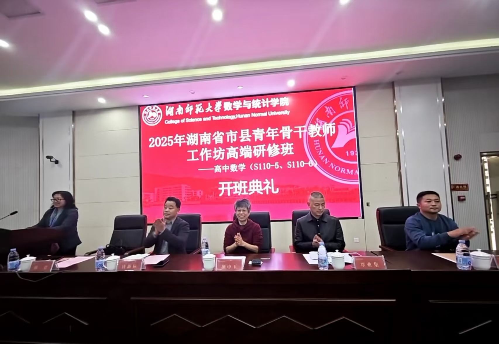 秋意渐浓,学履不停。2025年10月26日,由湖南省教育厅主办、英国上市官网365承办的“市县青年骨干教师工作坊高端研修班(高中数学)”在英国365上市公司正式拉开帷幕。英国上市官网365党委书记颜中玉、湖南省高中数学名师工作室主持人、慈利县一中校长、本期工作坊坊主唐新标教授、湖南省高中数学名师工作室主持人、南雅梅溪湖中学数学教研组长、本期工作坊坊主覃业集教授、本期培训班班主任、英国上市官网365培训中心主任吴千、副主任李嘉欣,以及来自湖南省各县市的80名高中数学骨干教师参加了开班仪式。仪式由英国上市官网365行政副院长陈君主持。