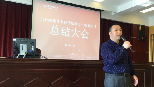 此次典礼由数学系副系主任袁智强老师主持,袁主任介绍数学教育实习总结大会的流程,拉开了报告会的序幕。