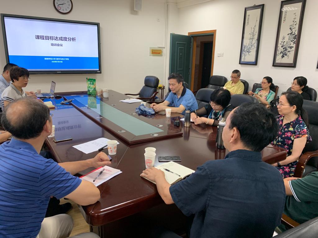 为进一步加强专业建设,推进学院数学与应用数学专业认证工作,7月10日上午,学院在理学院301会议室举行了“数学与应用数学师范专业课程目标达成度分析培训会议”。学院在校的领导班子成员、参与专业课程目标达成度分析工作的相关教师参加了此次会议。会议由教学副院长黄元秋教授主持。