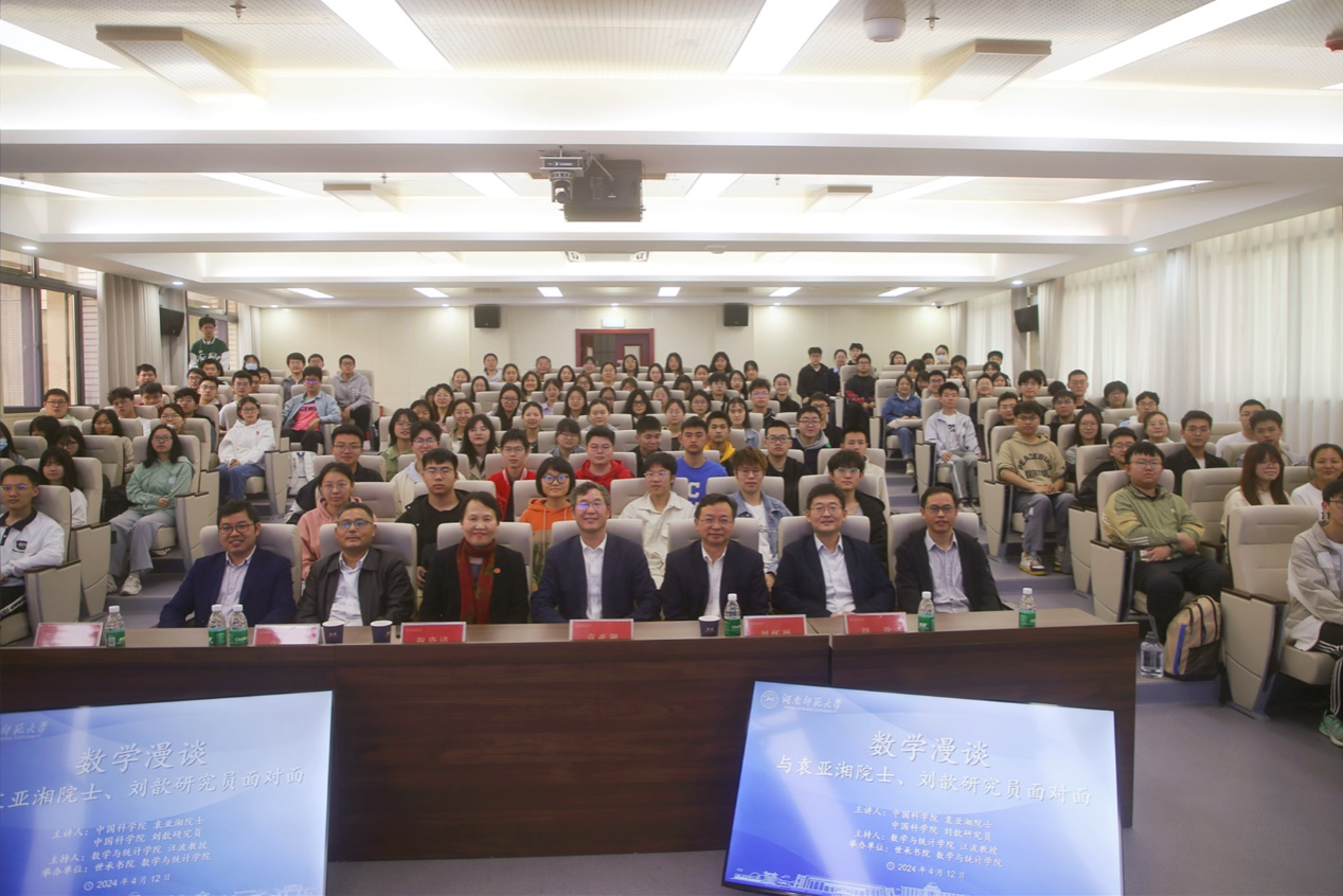 在交流互动环节,与会学生从如何平衡学科竞赛与专业成绩、如何体会数学之美等方面进行提问,袁亚湘、刘歆为同学们解答。
