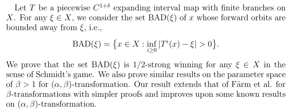 报告题目三:Schmidt's game and nondense orbits of a class of interval maps