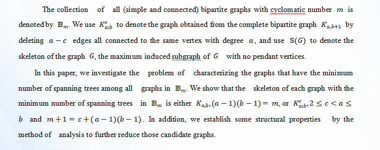报告题目:On bipartite graphs with the minimum number of spanning trees