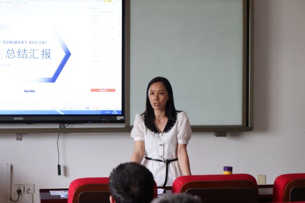 会议伊始,十一支实习队的代表轮流上台进行实习总结报告。他们从工作内容、实习成果、个人感触等方面展开汇报,讲述了在实习中的经历与收获。通过此次实习,他们在巩固专业知识的同时也提高了处理实际问题的能力。汇报期间期间,郭水霞针对各队出现的问题与不足提出建议,希望同学们可以转变学生思维,主动学习,提高综合竞争力。