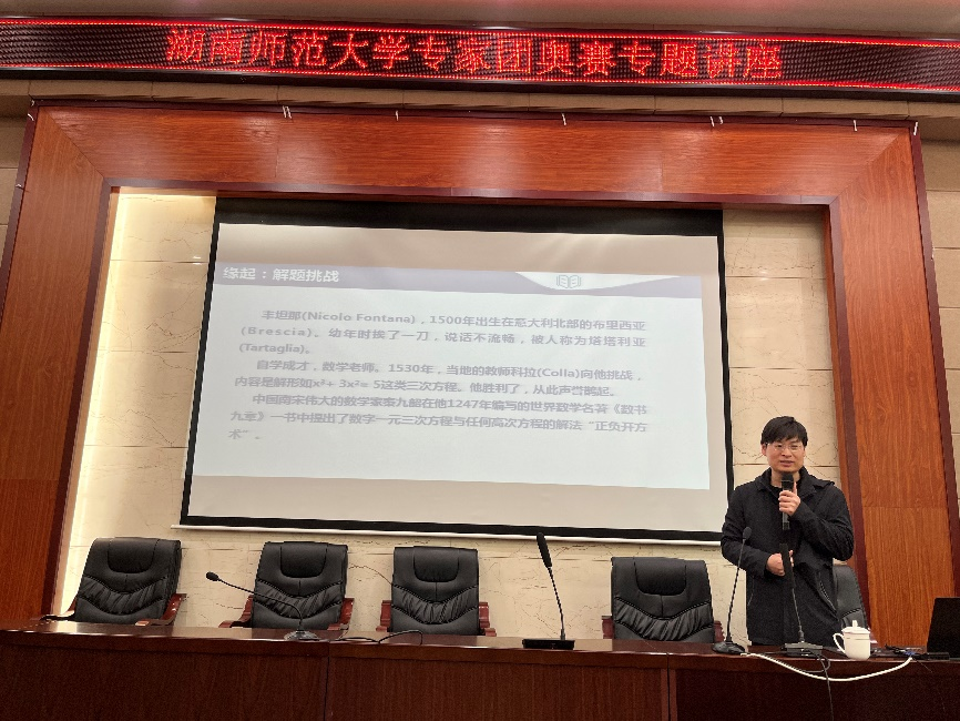 期间,蒋培杰和唐敏卫为三所高中学子做了《漫谈数学竞赛及思想方法》和《高中数学解题思维和相关方法》专题讲座。他们分别从“数学竞赛的来源”、“国际奥林匹克数学竞赛的发展”、“数学竞赛的解题方法”、“高中数学的解题思维”四个方面展开讲座,结合数学史上的著名数学家、高中数学竞赛中的经典题目以及常见的解题思路等内容做出了深入浅出的阐述,引导广大中学生积极思考、热爱数学,进而激发学生参与基础科学研究和科技创新的热情。