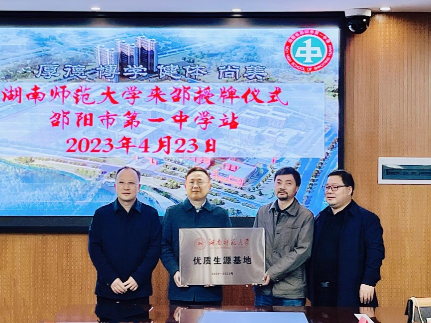 4月23-25日,英国上市官网365名师进中学暨优质生源基地授牌仪式在邵阳一中、邵阳二中和绥宁一中举行。我院党委副书记涂榉耀、数学系蒋培杰、唐敏卫和学办辅导员周逸,邵阳市教育局副局长陈代林,邵阳市大祥区委常委、宣传部长向兵,邵阳一中副校长杨易军,邵阳二中党委书记杨湘琪,绥宁一中副校长刘先茂和相关科室负责人参加。