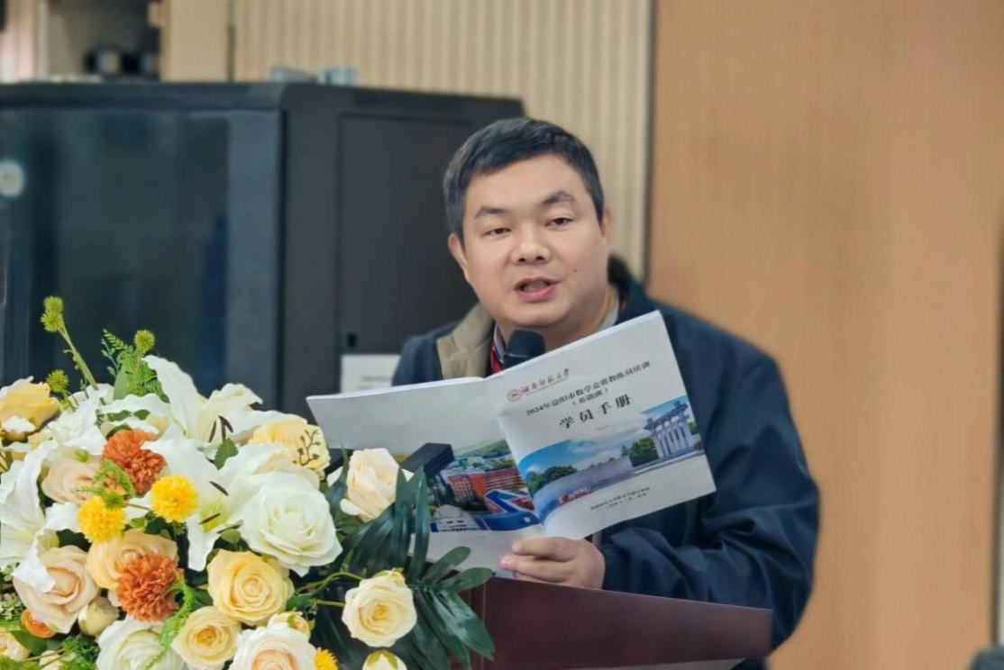 学员代表杨益兵代表全体参训学员对支持此次培训的领导老师们表达了诚挚的感谢,并表示一定珍惜宝贵的学习机会,认真参训,积极思考和研讨,虚心向授课专家教授请教,启迪智慧,收获知识,学以致用,为益阳市基础教育高质量发展贡献力量。